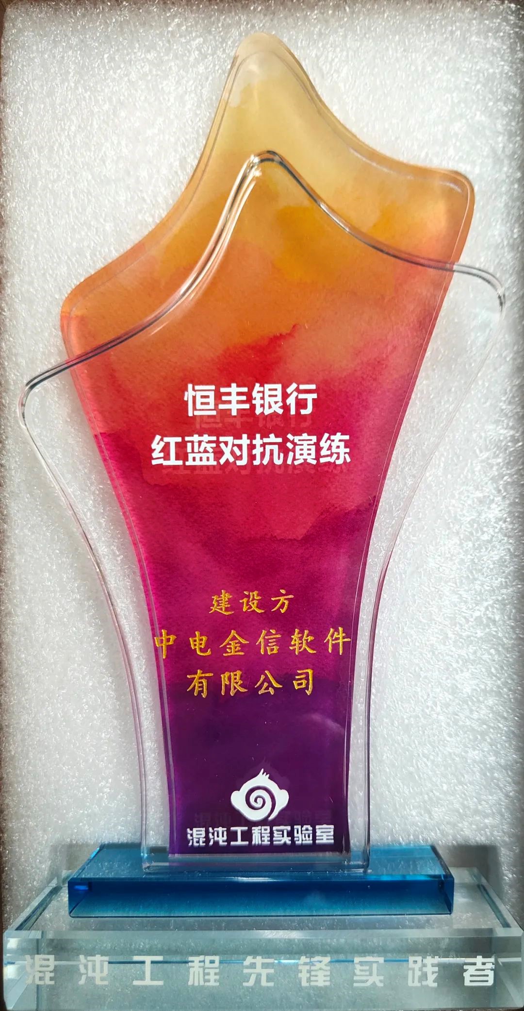 中电金信凭借在混沌工程领域的研发积累和丰富的工程实践,与恒丰银行携手建设的“恒丰银行红蓝对抗演练”获得了首届“混沌工程先锋实践者”优秀案例奖”。