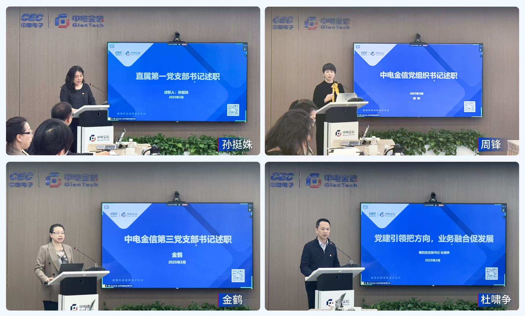 会上,中电金信各直属党支部及隶属属地的北京、上海、无锡、福州、成都党支部共9名党支部书记进行现场述职,分别就2024年度基层党建工作、担任党支部书记的思考体会、2025年党建工作思路举措等方面进行了交流分享。
